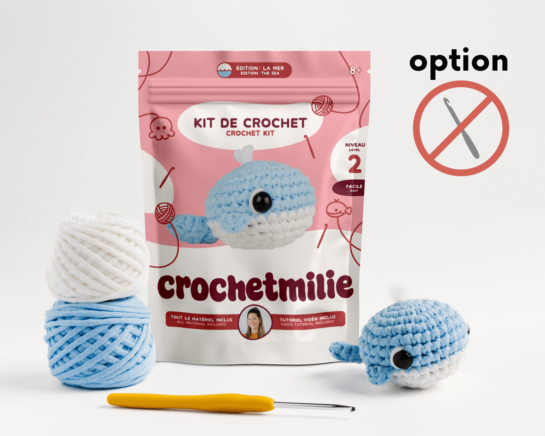 Vous recevrez un petit sac refermable contenant le matériel nécessaire ainsi qu'un accès illimité au tutoriel vidéo pour crocheter un adorable animal marin!